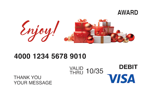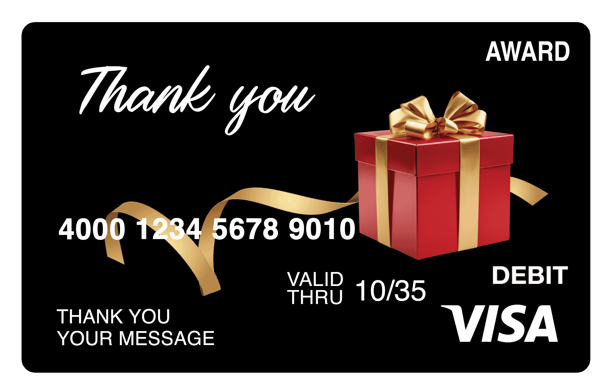 Using Visa® reward cards for businesses is a highly effective strategy for driving loyalty and engagement. Our custom Visa® award cards inspire both employee and customer loyalty, they spark greater motivation, and studies show that incentives like these help to increase productivity.